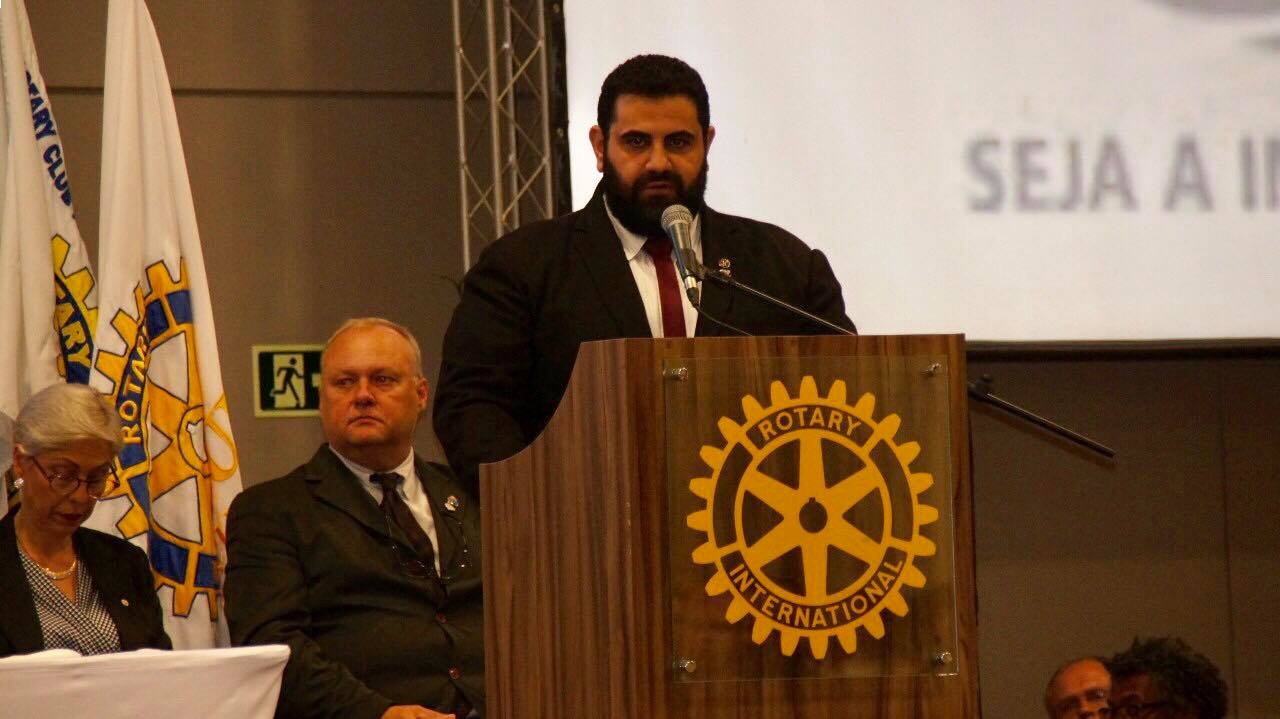 "Senhoras e senhores, boa noite. Cumprimento a Governadora Sonia e o Ex Governador Eduardo, cumprimento também as demais autoridades e toda família rotária presente nesta noite tão especial.