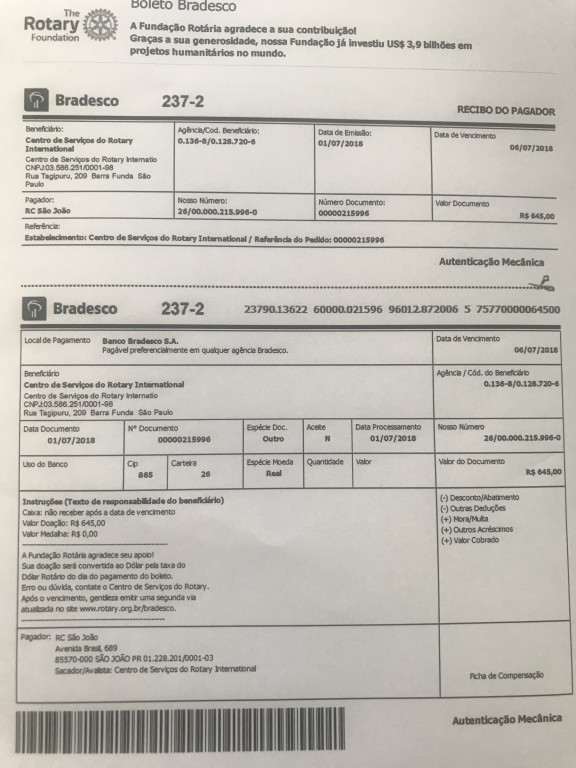 Cerimônia de posse do presidente e conselho diretor ocorreu na sexta-feira dia 29 de junho de 2018. O evento aconteceu na Associação Coasul e contou com a presença de rotarianos, autoridades e convidados. Após a solenidade foi servido um jantar onde foi realizado o projeto "Maior refeição do Mundo" que tem como objetivo arrecadar fundos para a erradicação da Polio no mundo.