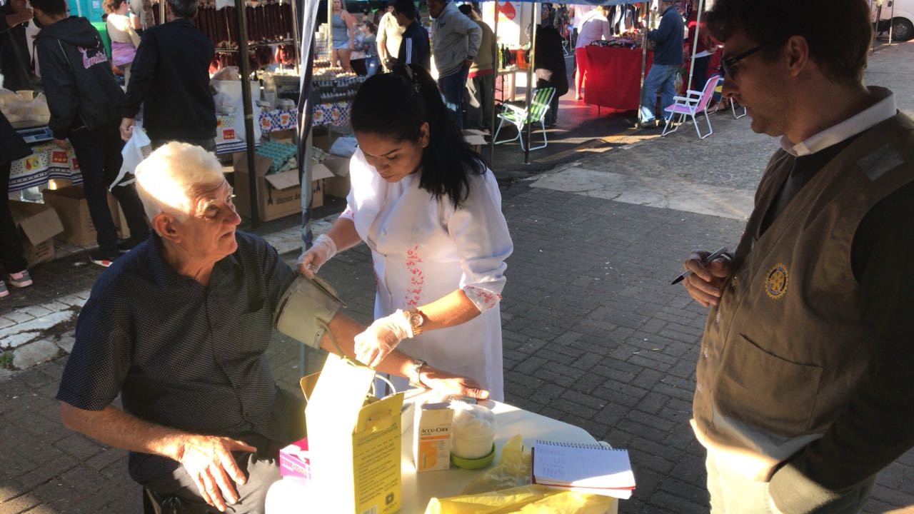 No seu terceiro domingo consecutivo neste mês de julho, o programa permanente e sustentável "Dia da Saúde" já atendeu e realizou, sem qualquer custo, 75 testes glicêmicos e mais de 100 aferições de pressão aos participantes da Feirinha da JK, que acontece todos os domingos das 9h às 11h, com a participação dos companheiros da família rotária Grande Lago acompanhados de uma enfermeira profissional.