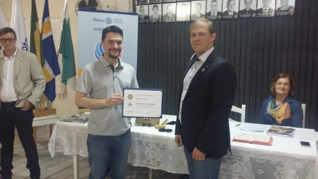 Aconteceu no dia 26/07/2018 a cerimõnia de posse do companheiro Douglas Saturi no Rotary Club de São João e também a entrega dos títulos Paul Harris para os companheiros Thiago Benato e Joarez Gobbi.