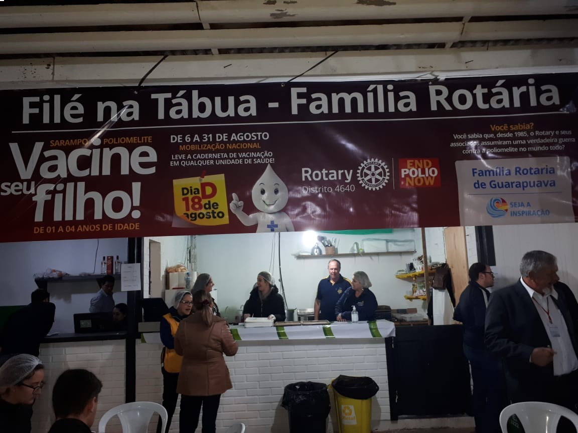 Com o início oficial da Campanha Nacional de Vacinação que vai de 06 a 31/08/2018 a Família Rotária de Guarapuava que já está articulada com a Secretaria Municipal de Saúde e a 5° Regional de Saúde para as intensas ações de conscientização e alcance eficaz da vacinação contra o sarampo e a poliomielite inicia também suas atividades, a exemplo da barraca na Exposição Feira Agropecuária e Industrial de Guarapuava - Expoguá, com a identificação por meio da faixa, além da presença do casal Zé Gotinha e Maria Gotinha como atrativos de atenção distribuindo balas para crianças e folhetos orientativos aos pais. O Rotary Club de Guarapuava-Guairacá participa das atividades com a certeza de contribuir para a erradicação da poliomielite. Podem ser pequenos gestos, mas integrados em um mesmo objetivo tornam-se grandes e inspiradoras ações capazes de transformar a realidade.