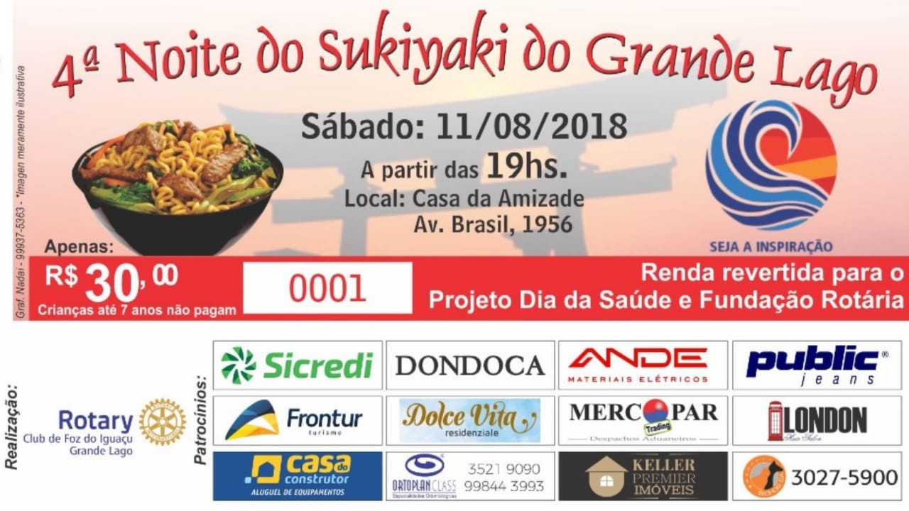 Acontecerá neste sábado dia 11/08 a 4a Noite do Sukiyaki, evento realizado pelo Rotary Club de Foz do Iguaçu-Grande Lago.
