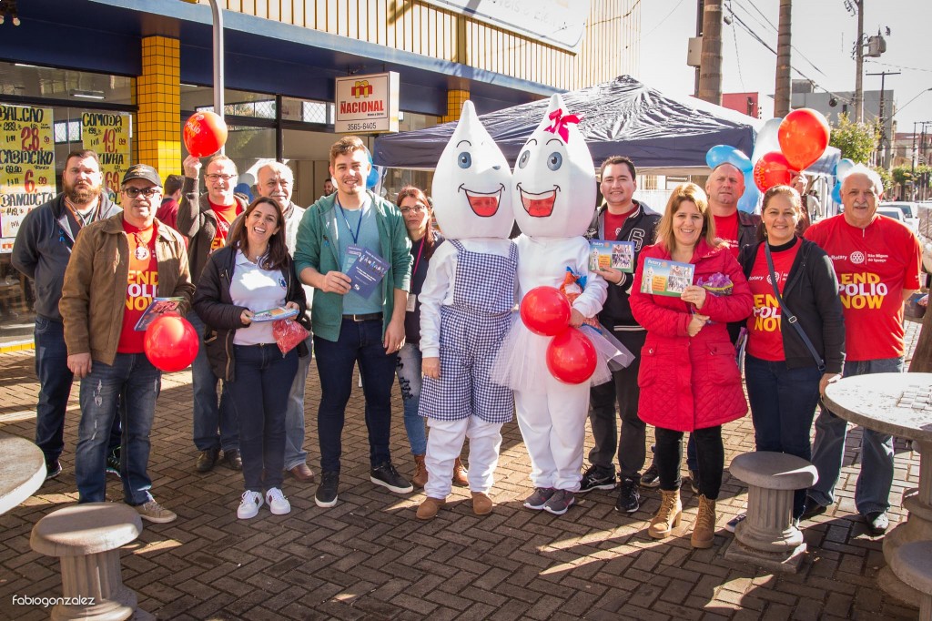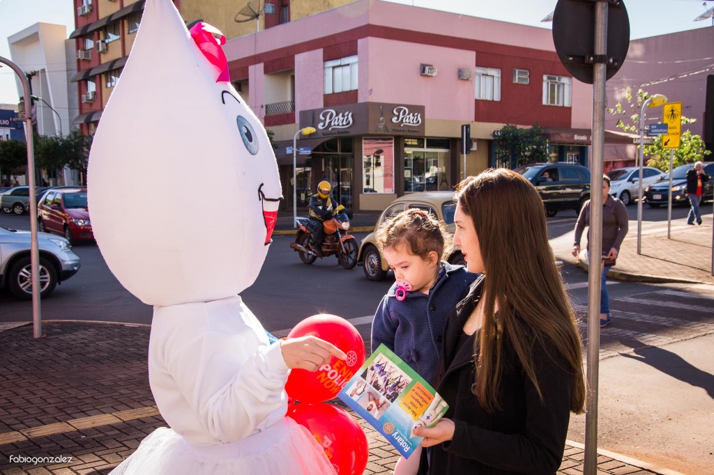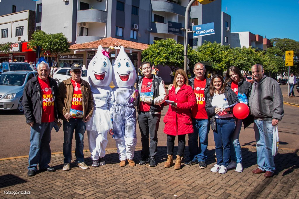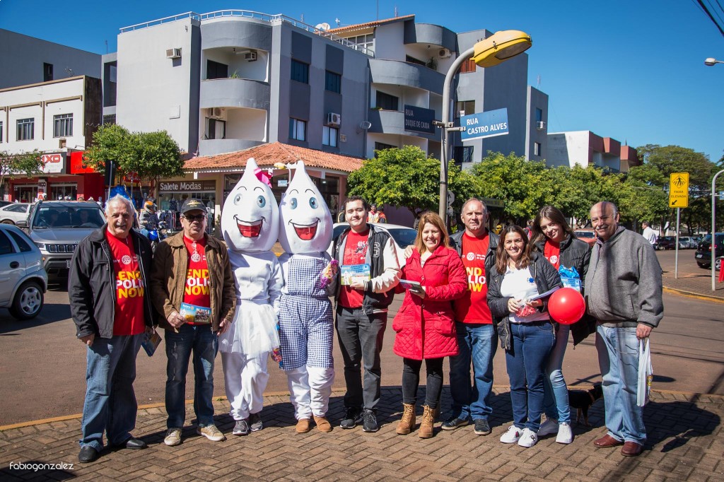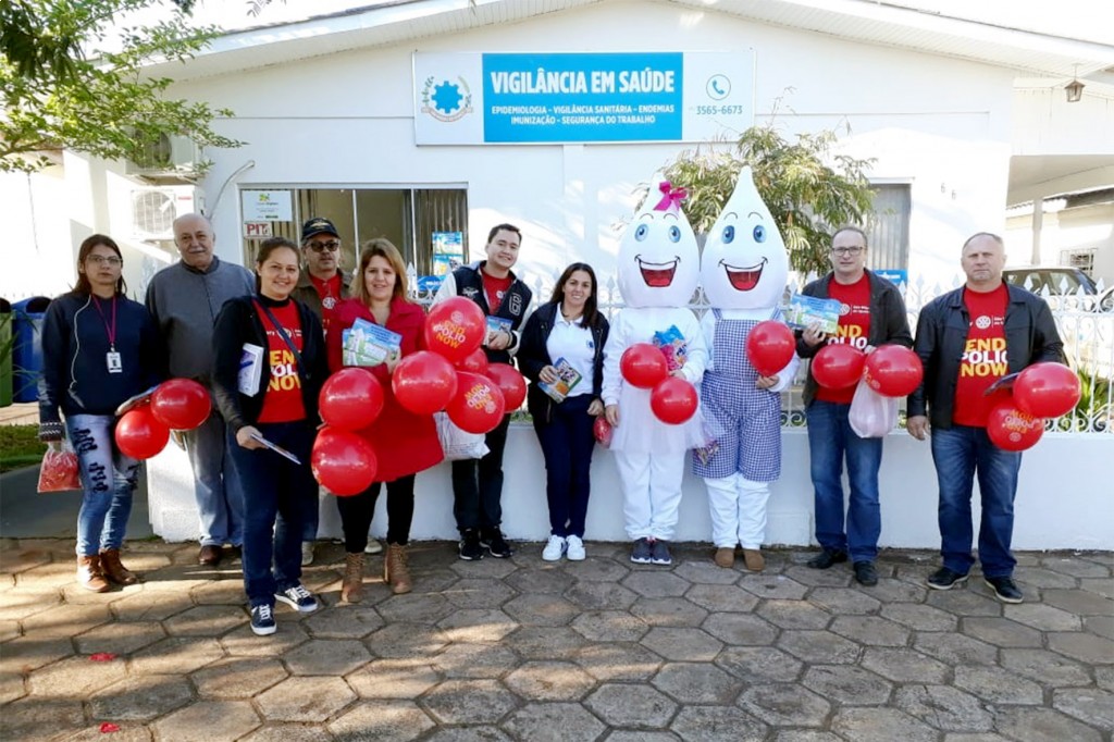 O Rotary em parceria com a secretaria de Saúde visitou o comércio local e andou pelas ruas da cidade para levar conscientização a população sobre a importância da vacinação contra a Poliomielite e Sarampo. Companheiros do Clube e funcionários da secretaria acompanharam o casa Zé Gotinha nesta ação.