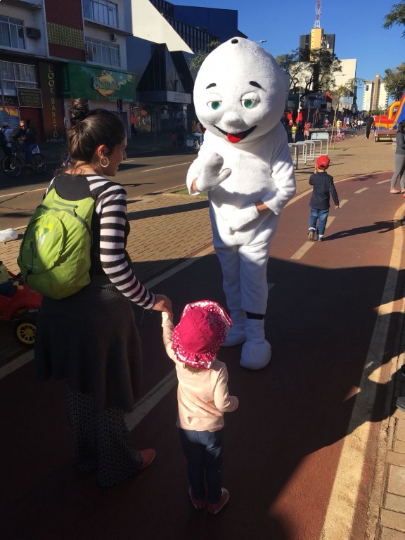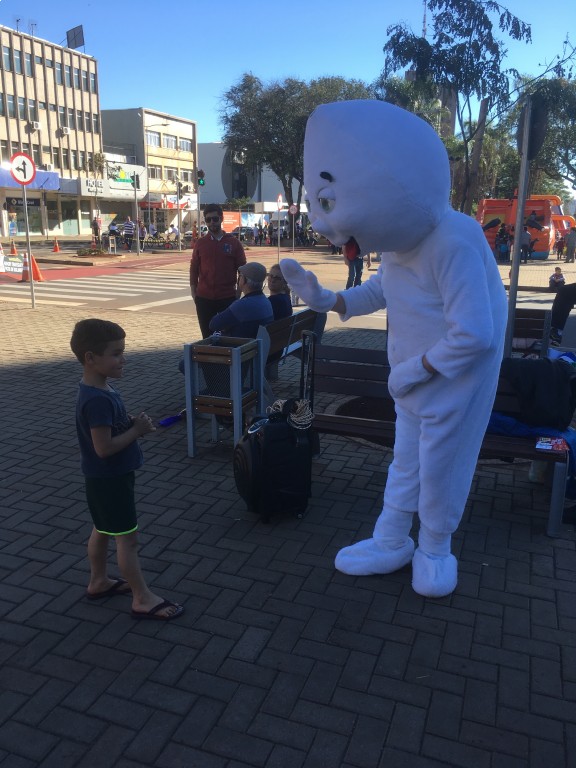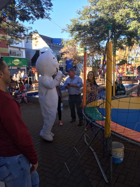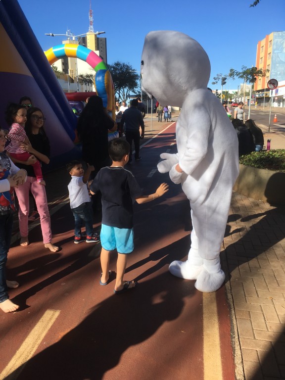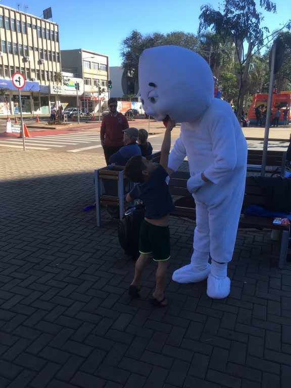 Aos domingos esta área do calçadão reúne famílias e crianças para aproveitar as tardes, e nada melhor que levar informação para todos. A ação em prol da Campanha de Vacinação contra a Poliomielite, evento nacional que visa vacinar todas as crianças entre 1 ano, até 5 anos incompletos, durante todo o mês de Agosto.