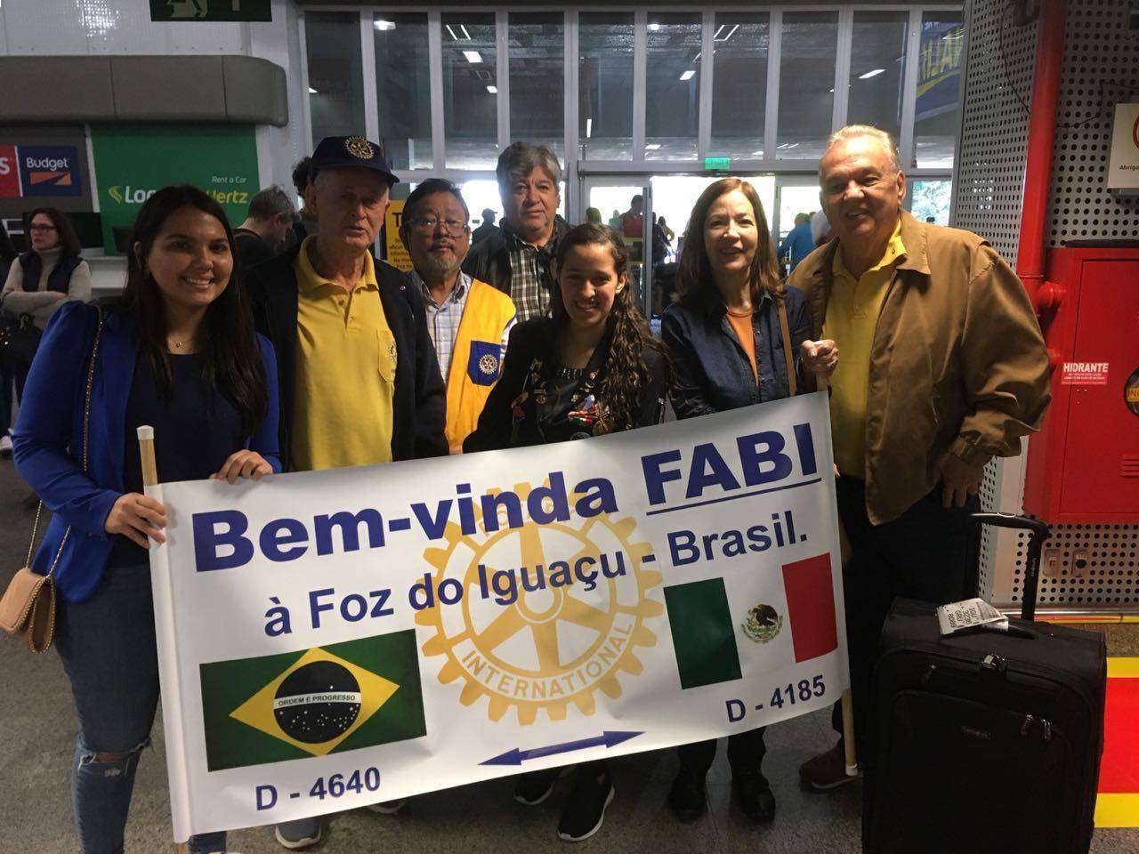 Fabiola foi recepcionada pelos companheiros do Rotary Club de Foz do Iguaçu, no Aeroporto Internacional desse município.