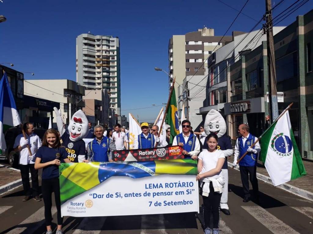 NESTA SEXTA-FEIRA, DIA 7 DE SETEMBRO DE 2018, DIA EM QUE SE COMEMORA O DIA DA INDEPENDÊNCIA DO BRASIL, OS ROTARY CLUBS DE GUARAPUAVA-LAGOA, GUARPAUAVA, GUAICARÁ, ROATRACTS GUARAPUAVA E CAMPOR-REAL, INTERACT GUARAPUAVA, ASSOCIAÇÃO DAS SENHORAS DOS ROTARIANOS E INTERCAMBISTAS PARTICIPARAM DO DESFILE CÍVICO-MILITAR NO CENTRO DE GUARAPUAVA, APRESENTANDO UM POUCO SOBRE O ROTARY PARA A POPULAÇÃO GUARAPUAVANA.
