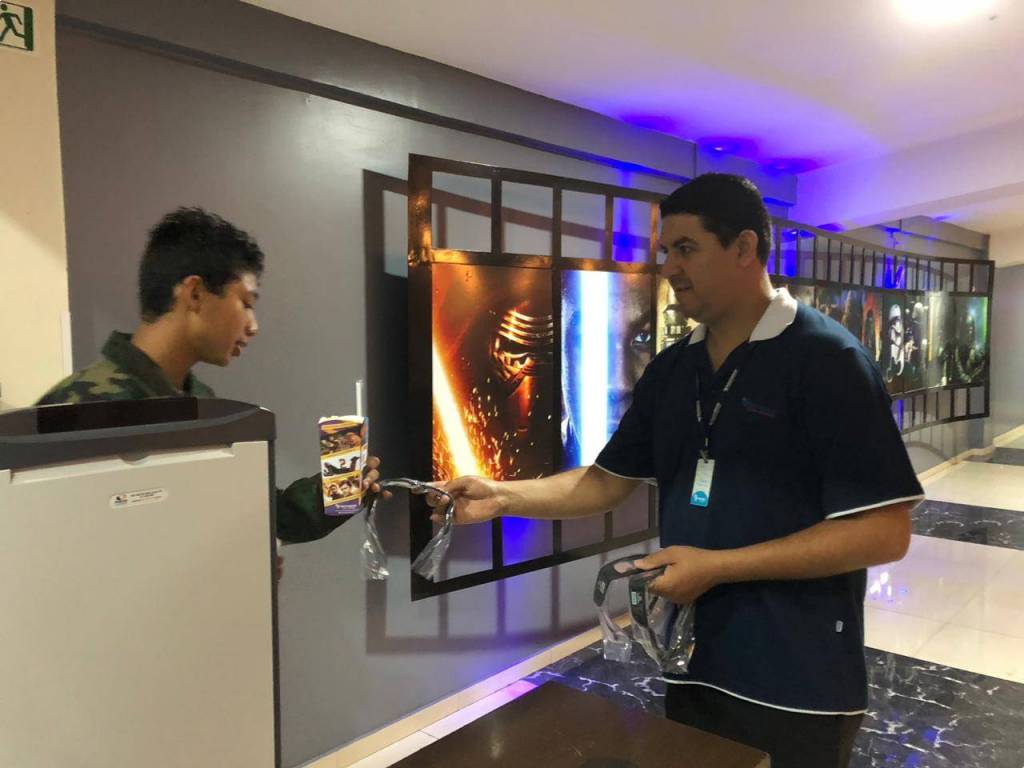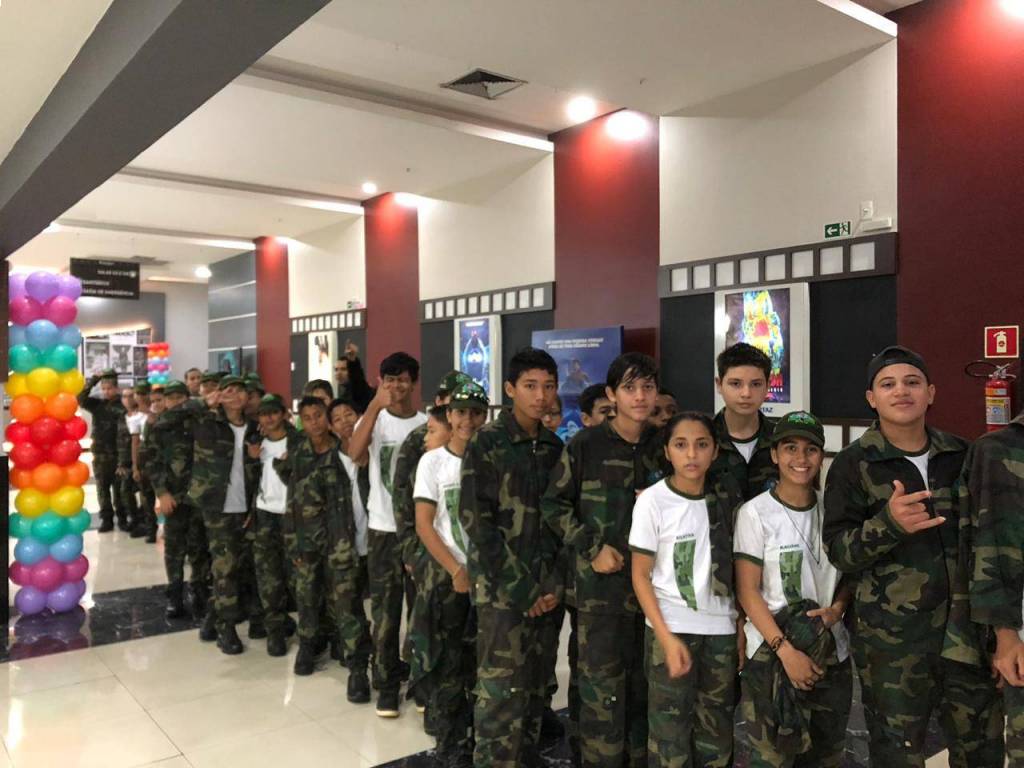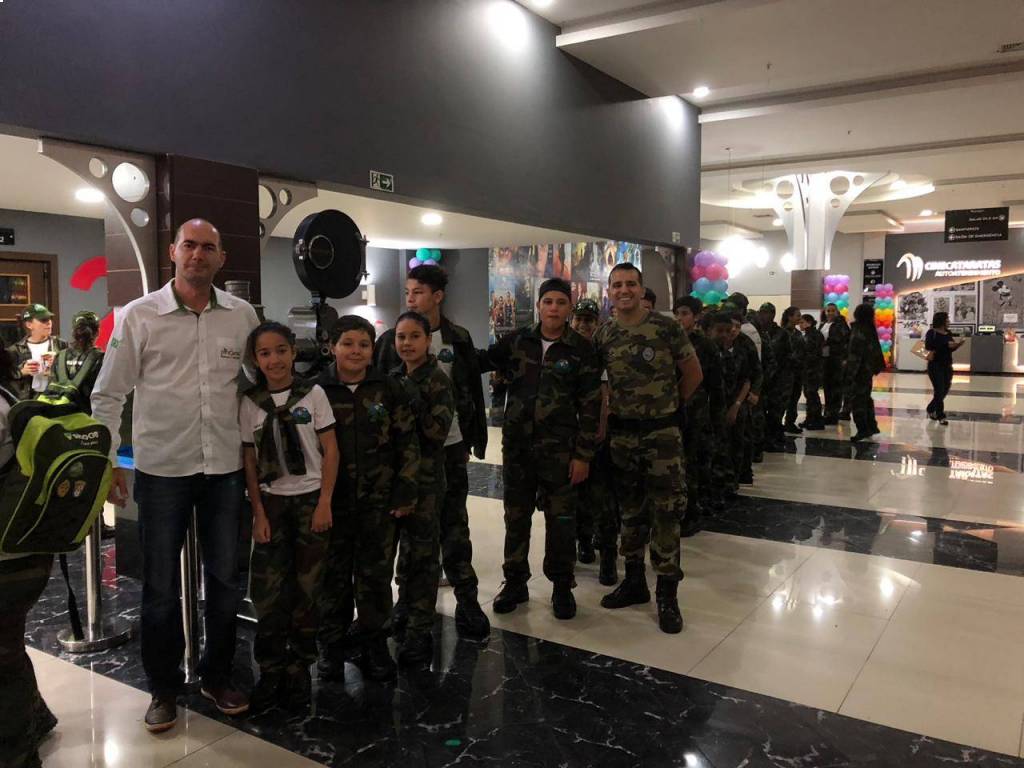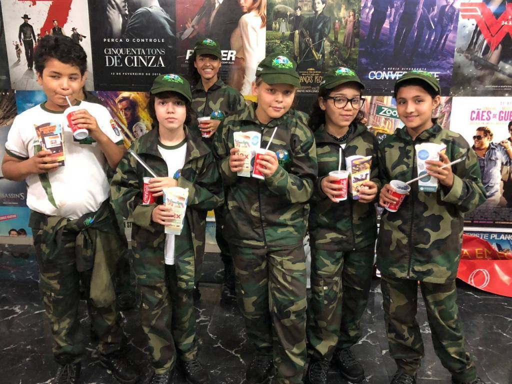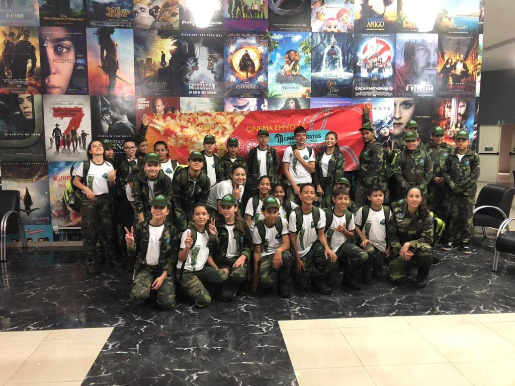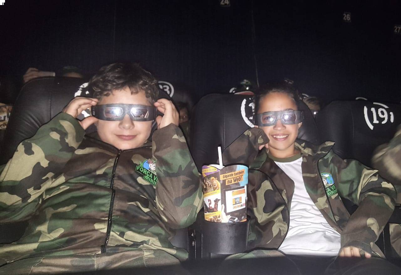Os militares: Soldados Miriam, Cleidiane, Gisele, Ana Alice, Lordani, Samuel, Dagostim, Corrêa, de Paula, Jeferson, Valério e o Capitão Nilson, acompanharam os alunos do projeto até a sala de cinema para assistirem ao filme 3D, Pé Pequeno. Esteve presente ainda, representando o Rotary Club de Foz do Iguaçu, o Soldado Potratz.
