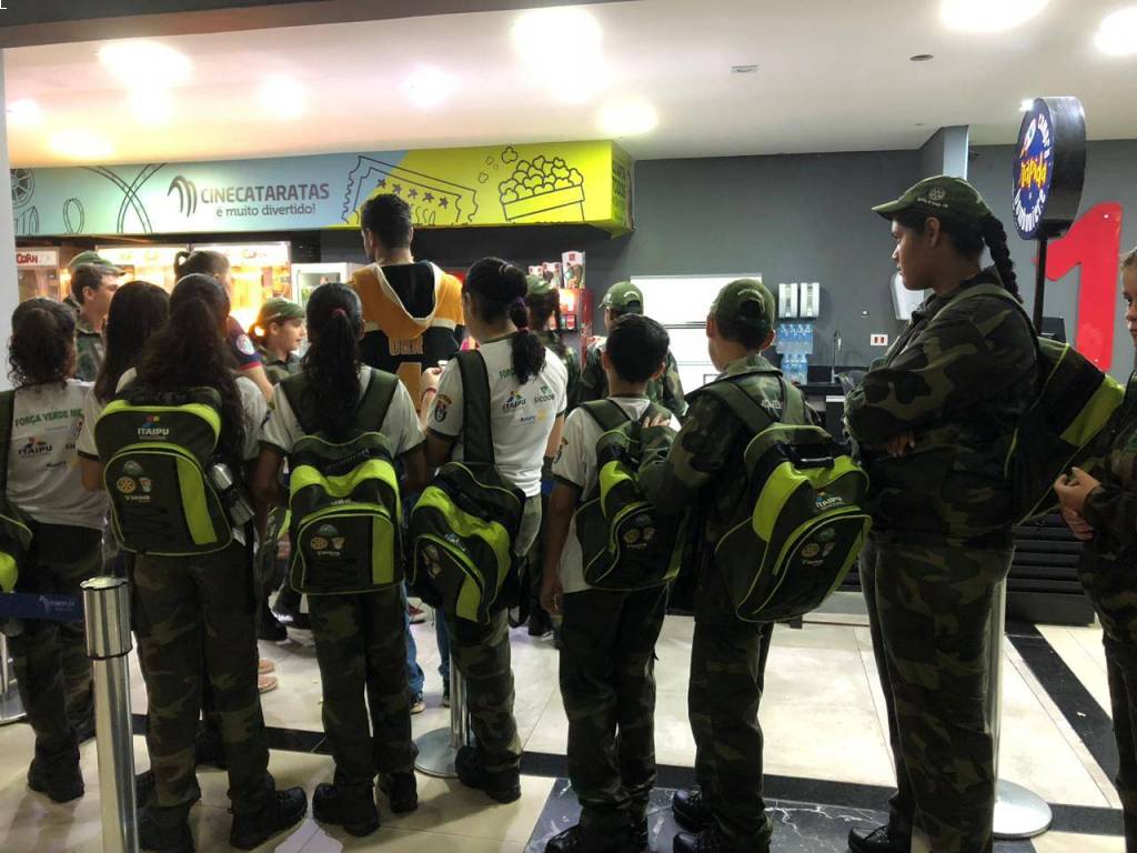 Na chuvosa terça-feira, 09/10/2018, o Cine Cataratas sito ao Shopping Cataratas JL, ficou radiado de luz pela presença de 120 crianças e adolescentes do Projeto Força Verde Mirim.