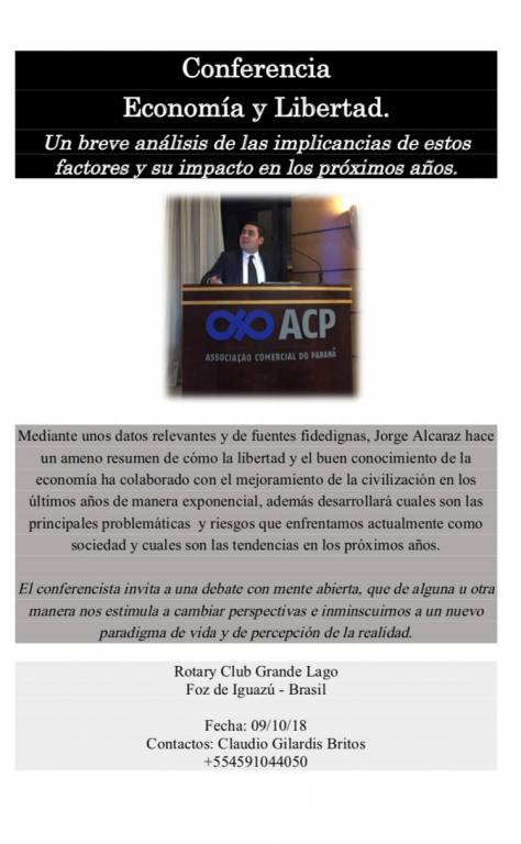 Na reunião do dia 09 de outubro do Rotary Club de Foz do Iguaçu-Grande Lago aconteceu a palestra sobre economia e liberdade.