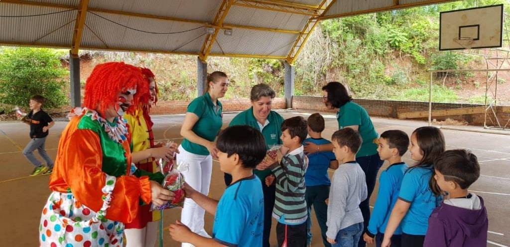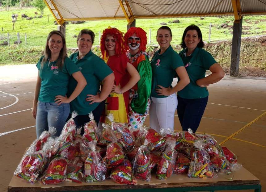 ASR de Verê realizou nesta semana que antecedeu o Dia das Crianças a entrega de doces e brinquedos aos alunos da Escola Municipal Francisco de Assis, na comunidade de Lambedor, juntamente com as alunas de Formação de Docentes. Estiveram presentes as personagens Emília e o Palhaço Picolé.