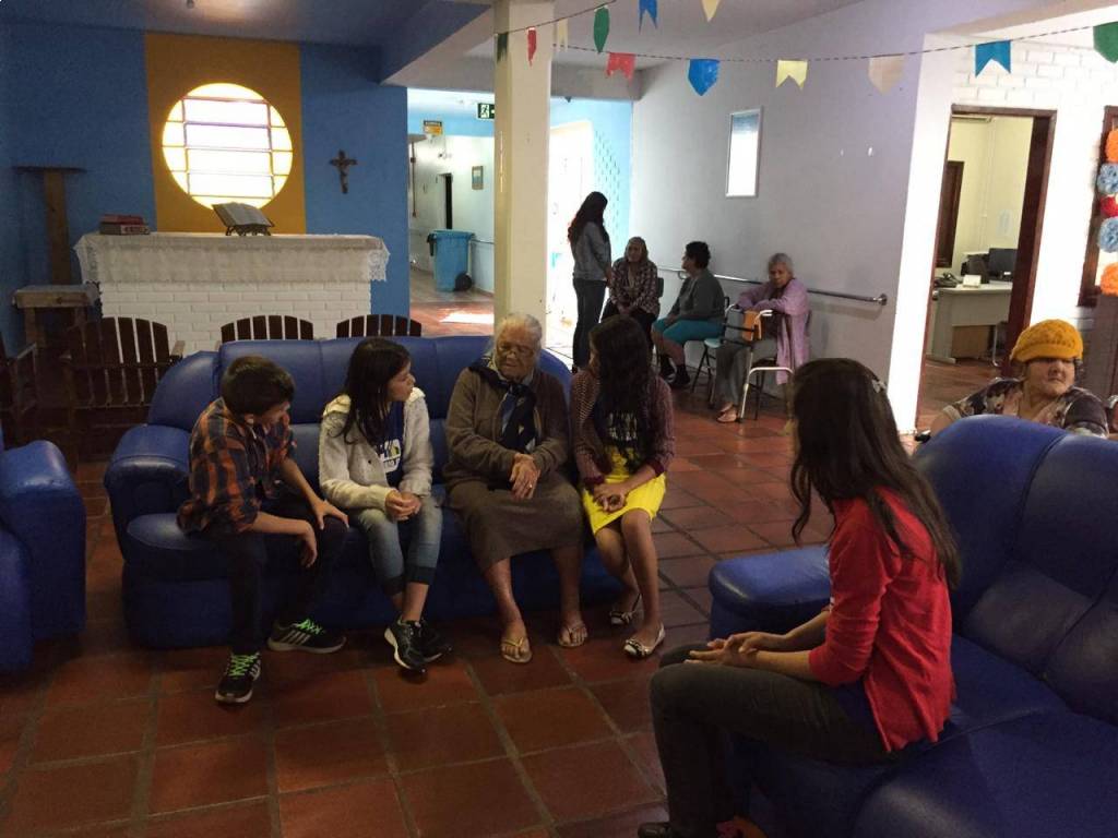 Alunos da Turma 7º E da Escola JK de Foz do Iguaçu, acompanhados das Professoras Cássia e Elis e dos Companheiros do Rotary Club de Foz do Iguaçu, Presidente Dorival e DQA Gabriel, bem como da Rotaractiana e filha do Companheiro Gabriel, Scarlat, visitaram o Lar dos Velhinhos na tarde do dia 18/10/2018, com o objetivo de integrar crianças e adolescentes com Idosos.
