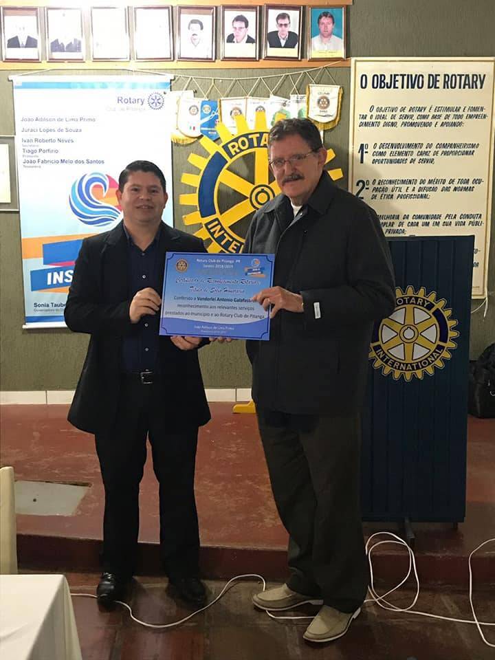 Rotary Club de Pitanga faz entrega de título de reconhecimento rotário ao Dr. Vanderlei Antonio Galafassi, sócio fundador do clube.