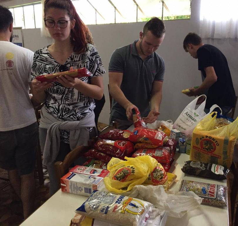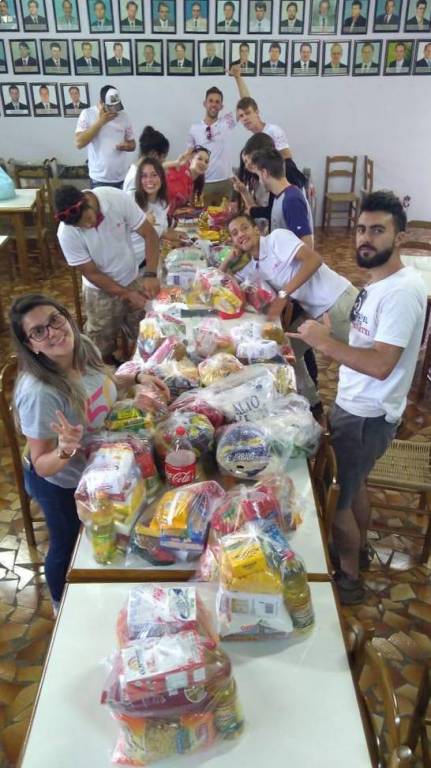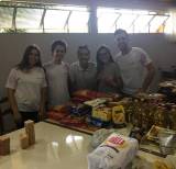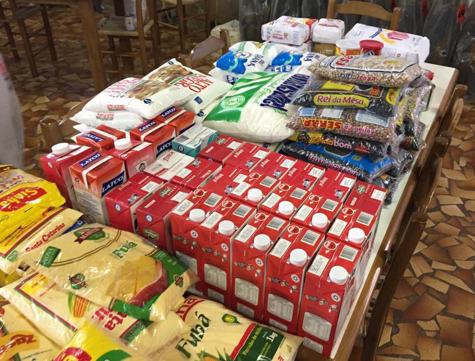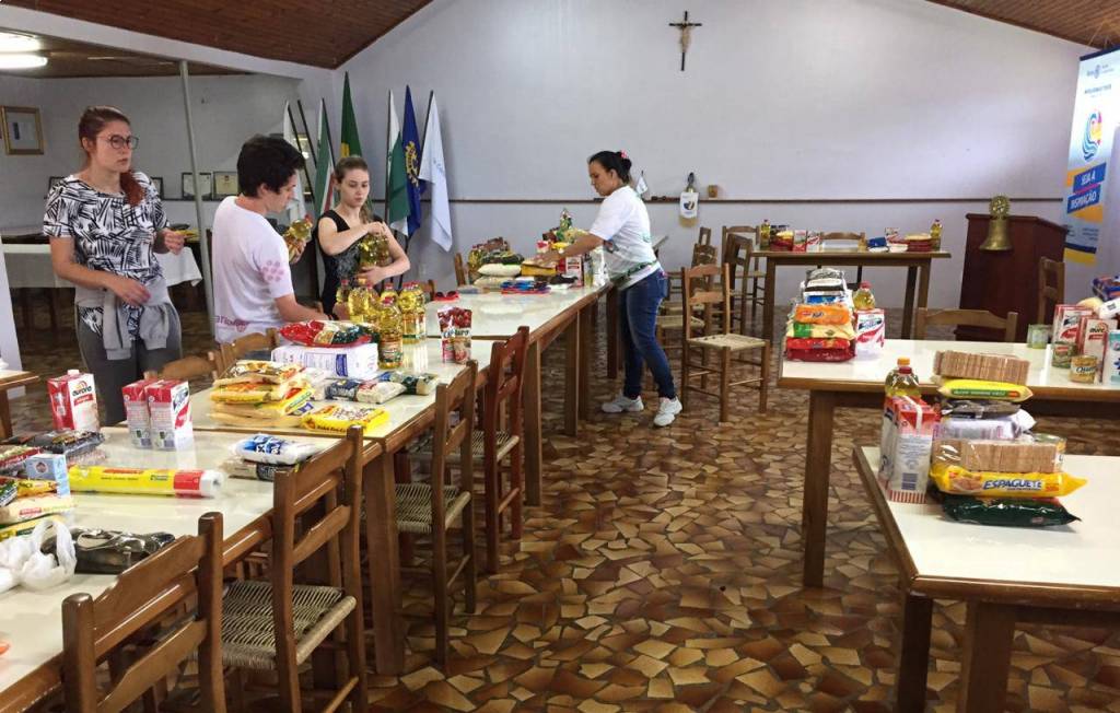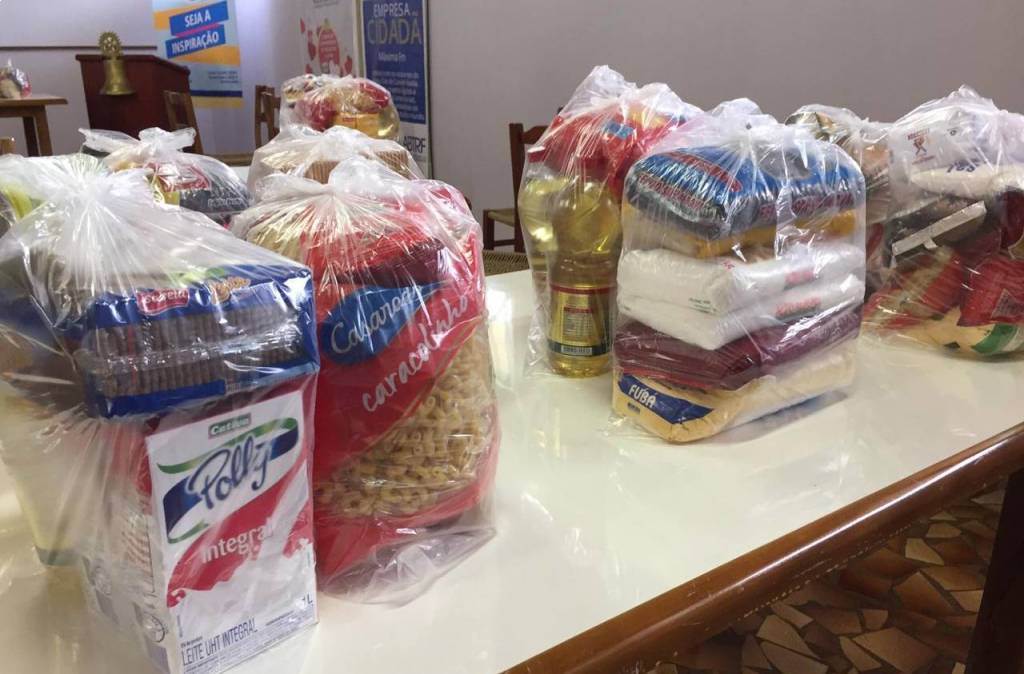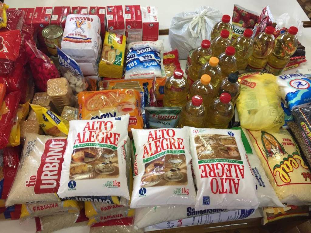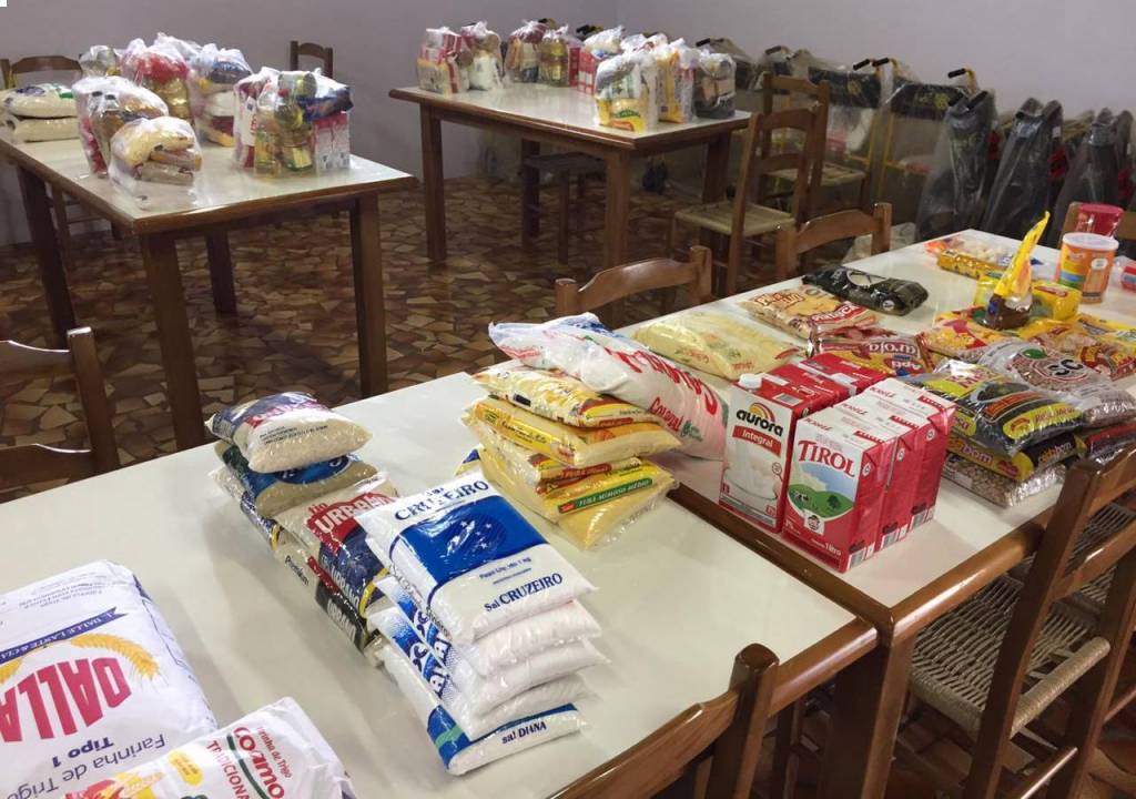 Foram mais de 400 quilos de alimentos coletados; foram feitas mais de 50 cestas com alimentos sortidos que à tarde foram entregues a famílias carentes do município.