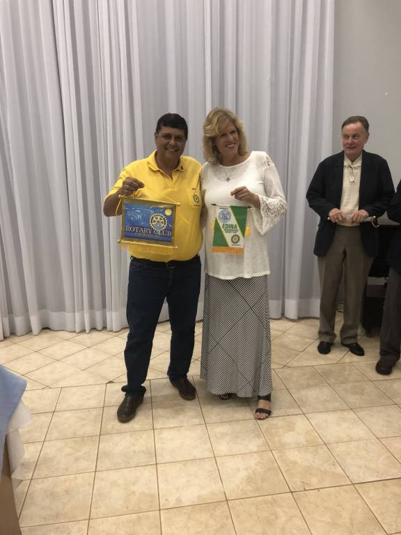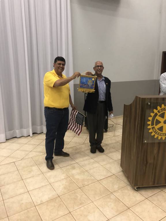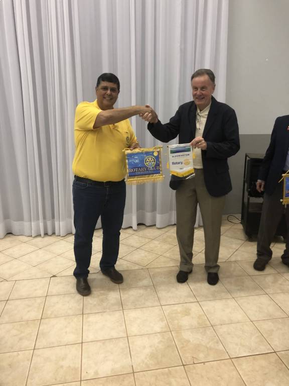 Na reunião, trocou-se as flamulas entre os clubs de Minnesota e Foz do Iguaçu.