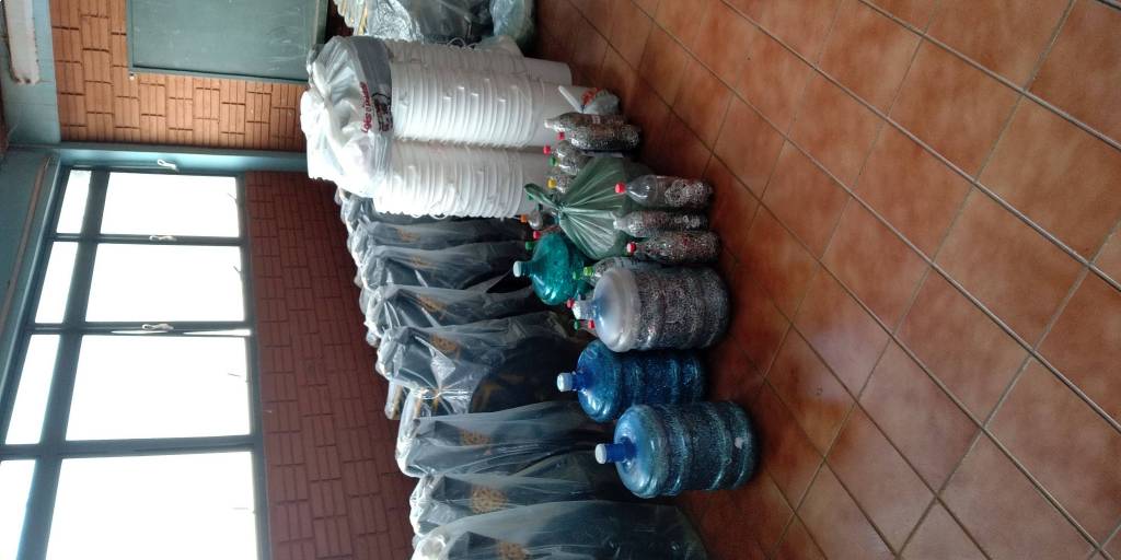 Na oportunidade foi recolhido uma grande quantidade de lacres de alumínio, o equivalente para trocar por uma cadeira de rodas.