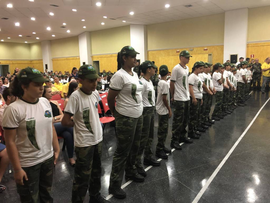 Acompanhados do Comandante da 5ª Companhia Ambiental Força Verde, Capitão Nilson Figueredo Alves Junior, sob atento olhar do Comandante do Batalhão de Polícia Ambiental – Força Verde, Major Manoel Jorge dos Santos Neto, bem como representantes de diversas autoridades, os formandos prestaram juramento incorporado ao Programa Força Verde Mirim, sendo que, durante o ano, cumpriram-se 100 horas aula.