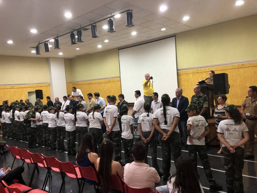As 19hs do dia 21/11/2018, na sede do Sindicato dos Eletricitários em Foz do Iguaçu, ocorreu a formatura de 120 crianças e adolescentes do projeto Força Verde Mirim, lindamente organizada pelos Policiais Militares Ambiental da 5ª Companhia Ambiental Força Verde.