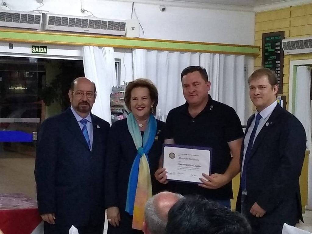 Para finalizar a visita, aconteceu a reunião festiva onde o companheiro Alexandre Batistela foi agraciado com o título Paul Harris. Também foi homenageado o sócio fundador Luiz Evaldo Follmann. O evento encerrou com um delicioso jantar.