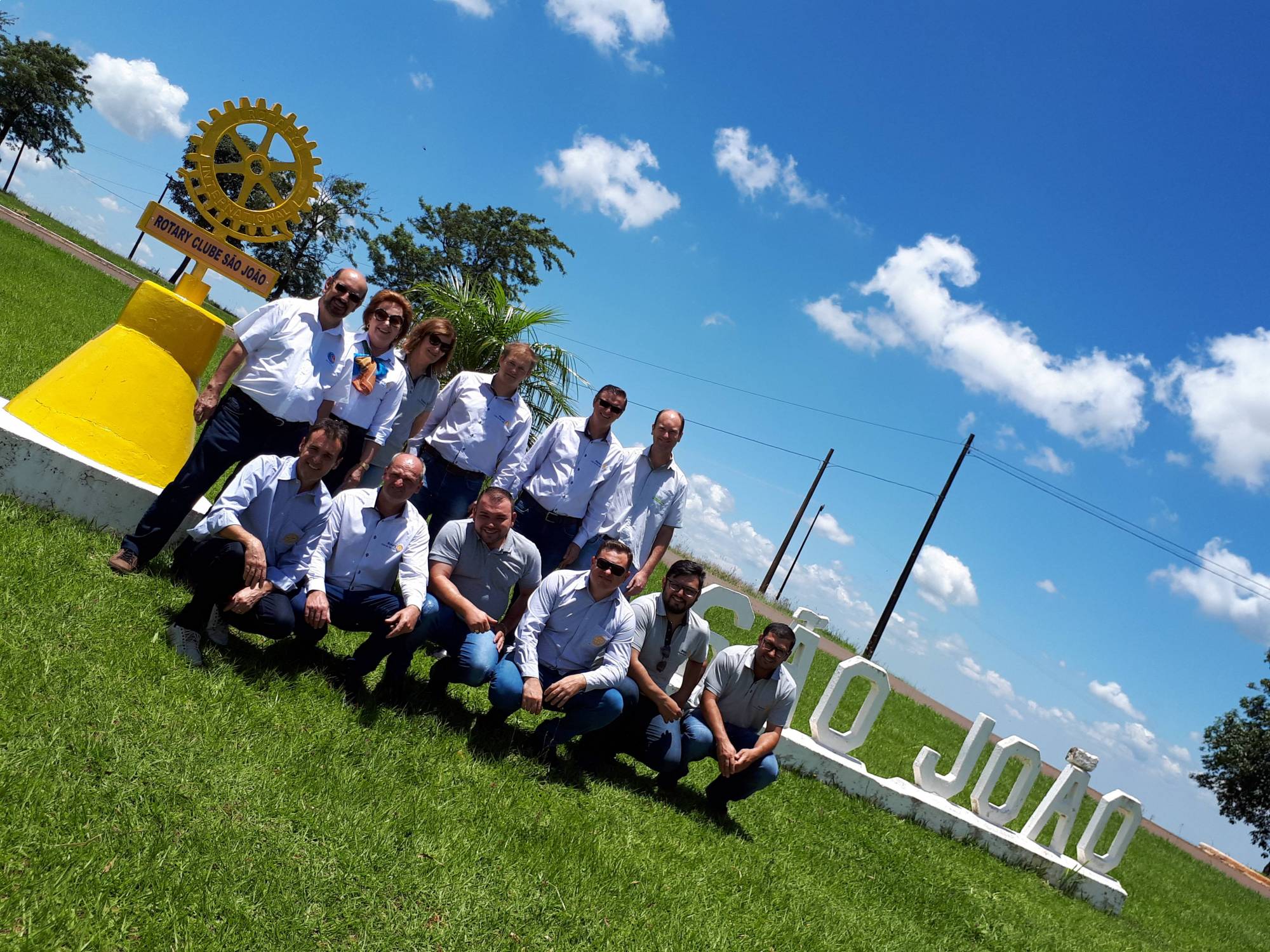 O casal foi recebido para um almoço com associados partindo em seguida para a tradicional foto no marco rotário da cidade.