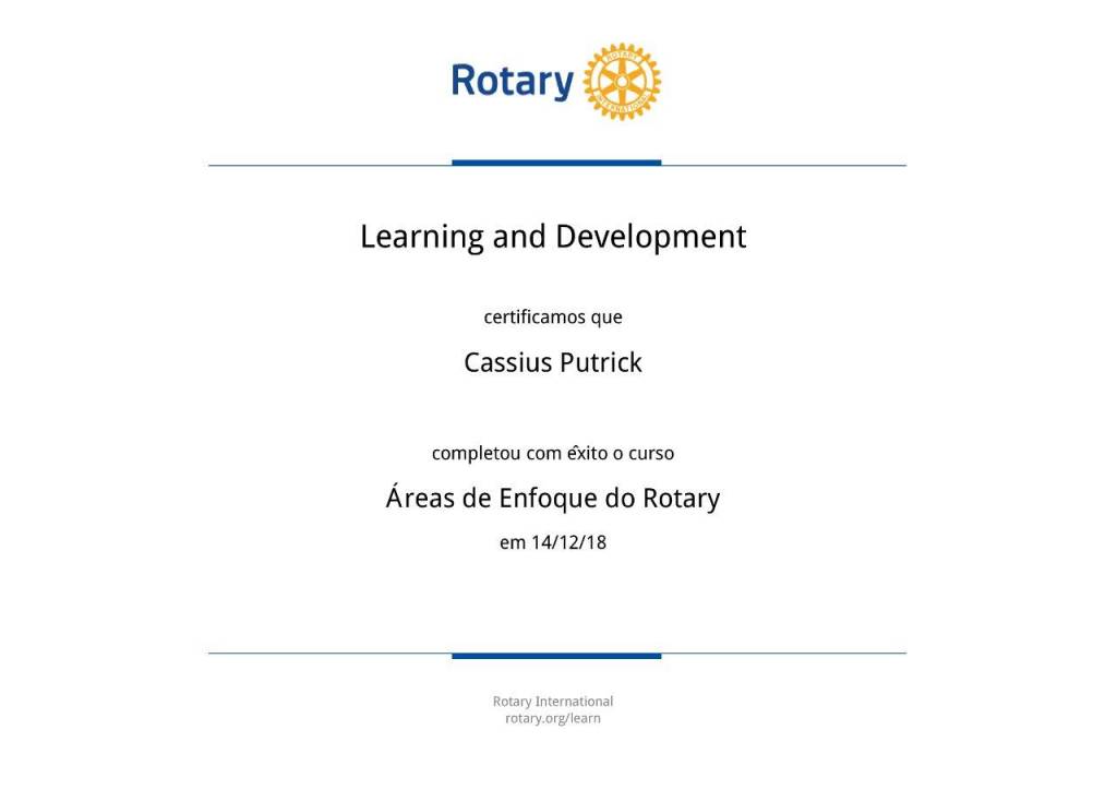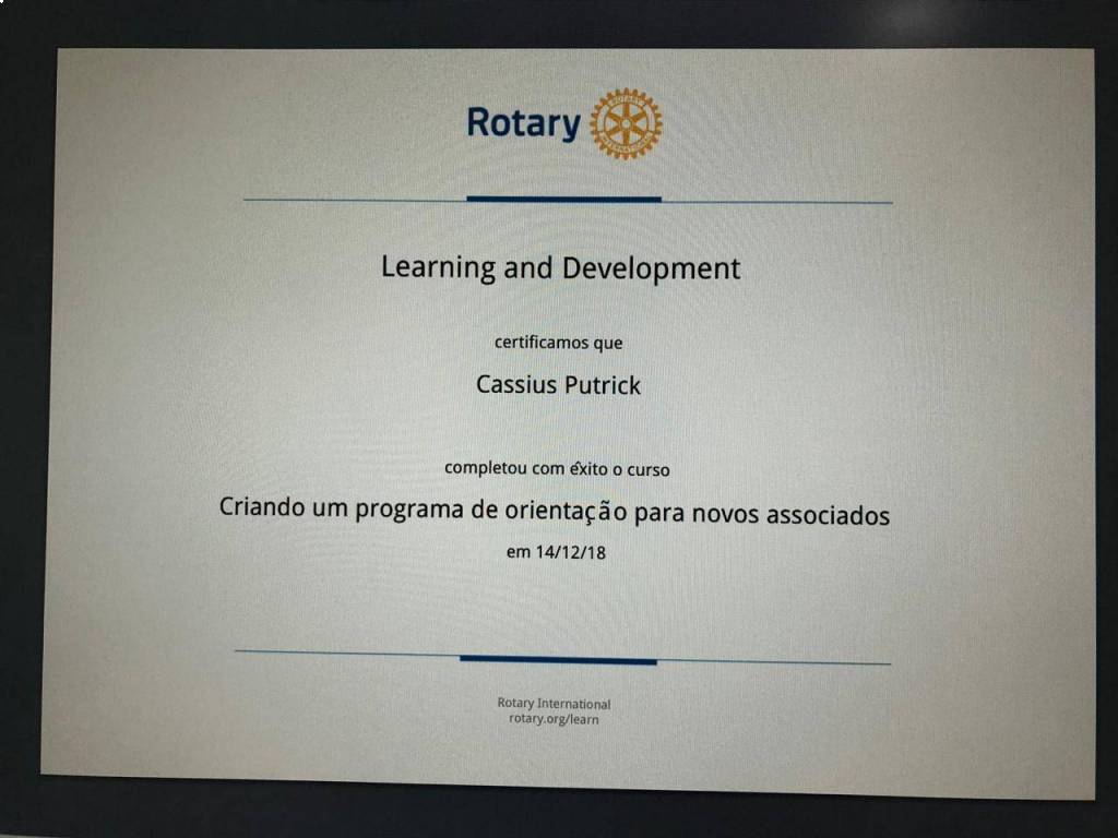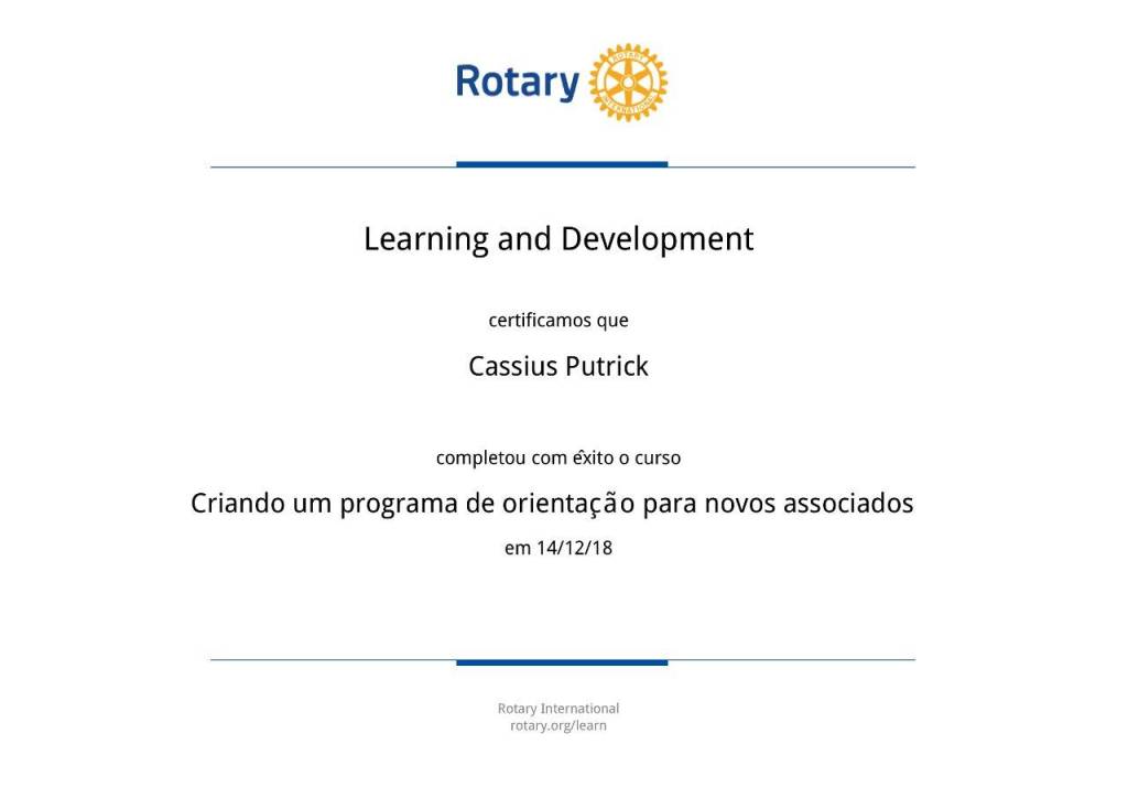 O companheiro Cassius Patrick Putrick, recém empossado quando da visita oficial da Governadora Sônia ao clube em 27 de novembro de 2018, assim o fez, aproveitando a plataforma da Central de Aprendizado, realizou alguns cursos para aprimorar seus conhecimentos e assim se inspirar em Rotary.