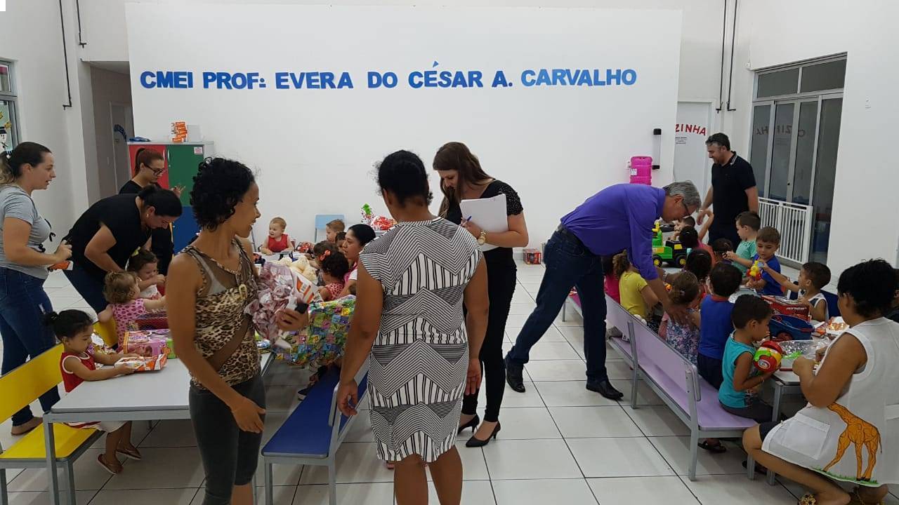 Companheiros do Rotary Club de Toledo-Lago fizeram a entrega de brinquedos para as crianças atendidas no CMEI Professor Everaldo César A. Carvalho. A ação ocorreu no dia 18 de dezembro e fez parte da primeira atividade da Gincana Rotária de Toledo.