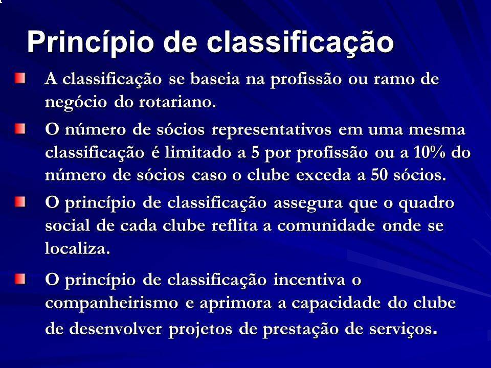 A classificação do associado é o princípio que orienta a construção do quadro associativo de um Rotary Club. Desta forma, a lista de classificações do clube deve bem representar as atividades empresariais e/ou de prestação de serviços desenvolvidas na comunidade que o acolhe.
