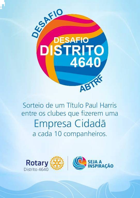 Por fim, o companheiro Cláudio Gilardi Britos apresentou o Desafio Distrito 4640 aos clubes que fizerem uma Empresa Cidadã a cada 10 companheiros.
