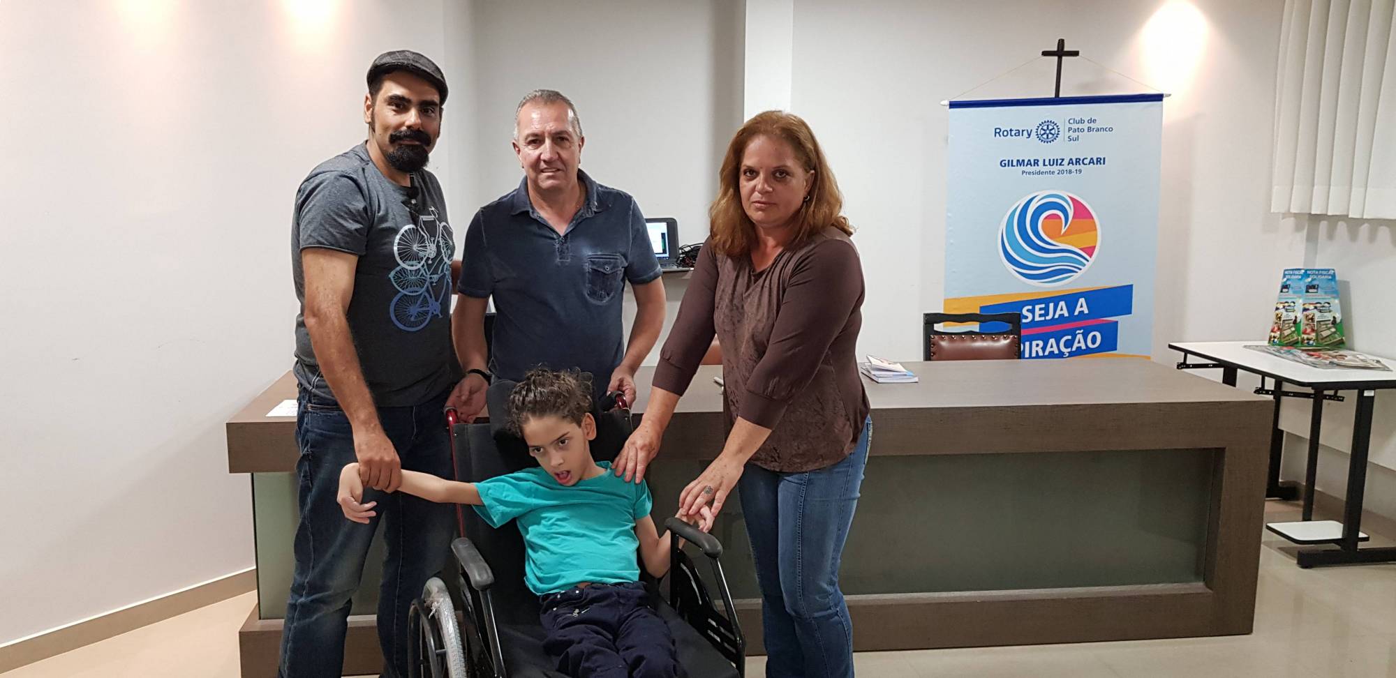 Foi entregue uma cadeira de rodas adptada a uma criança com necessidades especiais poder ir a aula na Apae. Muito emociante para os pais que não tinham condições de comprar essa cadeira, assim poderão encaminhar seu filho para a aula.