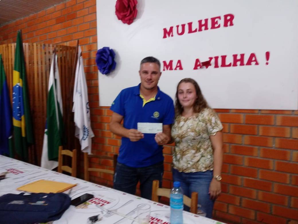 A reunião semanal do Rotary Club de Itapejara D'Oeste, do dia 28 de março de 2019, contou com a presença da Presidente da Câmara de Vereadores do município, Isabela Schmoller. Na oportunidade, na presença do Presidente do Clube, Alexandre Barros e demais companheiros, ela fez a entrega de um cheque no valor de R$1.000,00. Segundo a Vereadora, como Presidente do Legislativo, ela recebe esse valor a mais do que os demais vereadores e vem doando a entidades do município, sendo que no mês de março, a escolha foi pelo Rotary. O Presidente Alexandre agradece e destaca que o dinheiro será destinado para ampliar ainda mais o Banco Ortopédico do Rotary Club de Itapejara D'Oeste.