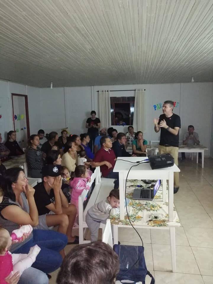 Palestra sobre saúde bucal para pais e crianças da creche Santa Izabel em Pitanga-PR.