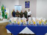 O Rotary Club de Guarapuava Lagoa entregou nesta terça -feira, dia 16 de abril, kits de chocolate aos adolescentes que participam do Projeto Pelotão Esperança. Foram entregues 74 kits com chocolates, ao comandante do 26º Grupo de Artilharia de Campanha, Tenente Coronel Kenssei Arashiro, os quais foram adquiridos com recursos dos eventos promovidos pelo Lagoa durante o ano rotário 2018-2019. O evento contou ainda com a participação do Subtenente Locimar e do Sgt Fonseca que coordenam o projeto no 26º GAC, que funciona há 21 anos em parceria com o Rotary Club de Guarapuava Lagoa, Prefeitura Municipal de Guarapuava, Faculdades Guairacá, Liga de Tiro ao Prato e Academia Randoni.