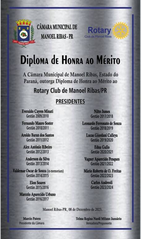 Postado em: 08 de Dezembro de 2023 por Rotary Club de Manoel Ribas