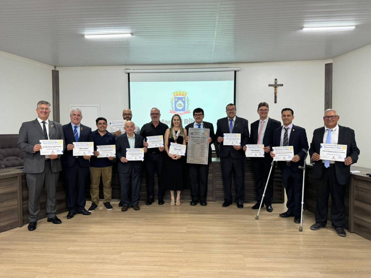 Rotarianos receberam o diploma de Honra ao Mérito. A proposição do projeto foi da vereadora Telma Milano Januário e foi aprovado por unanimidade pelos vereadores da casa legislativa.