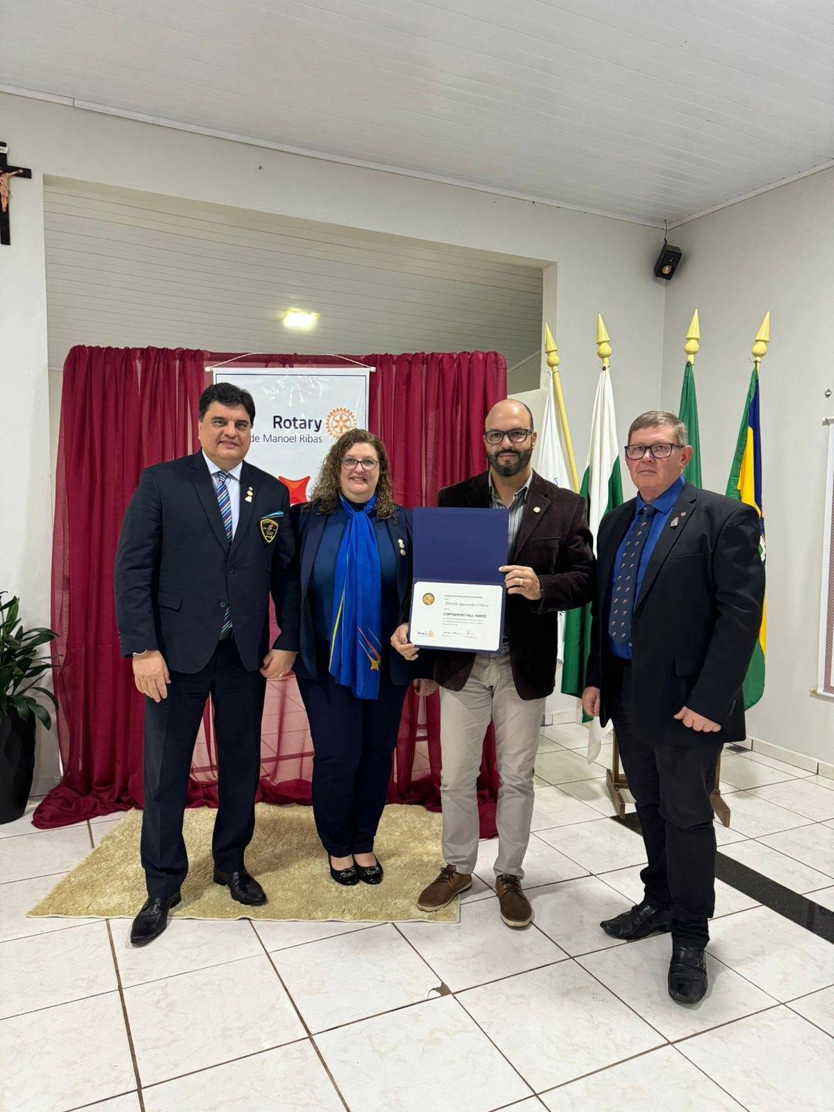 O Governador Luiz Carlos Alves de Oliveira teve a honra de entregar o certificado do título Paul Harris ao companheiro Marcelo, em reconhecimento aos seus serviços prestados ao clube e à comunidade. Em seguida, o atual Presidente Luís Carlos Freiberger do Rotary Club de Manoel Ribas colocou o distintivo de Paul Harris em Marcelo, simbolizando a sua dedicação e compromisso com os valores rotários.
