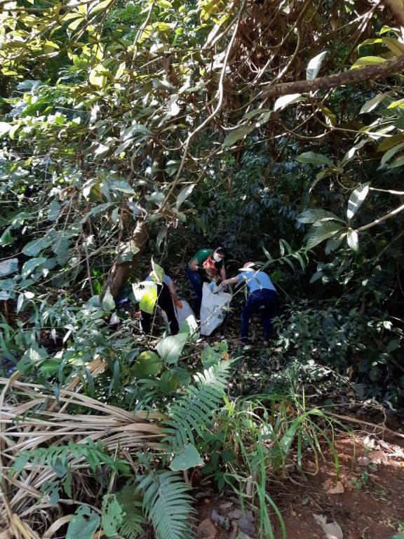 Foram retirado muito lixo da encosta da rua e de dentro da mata...