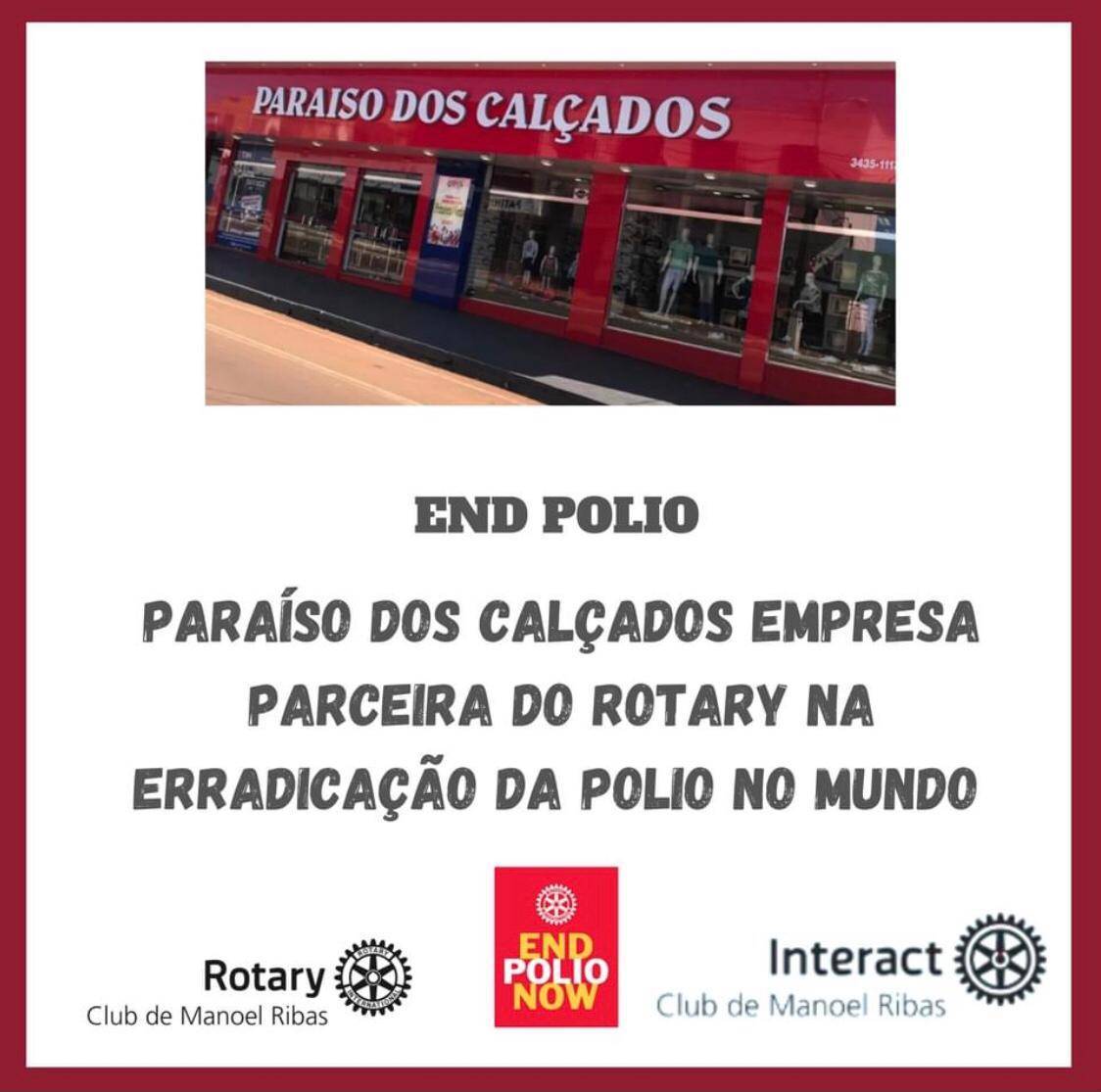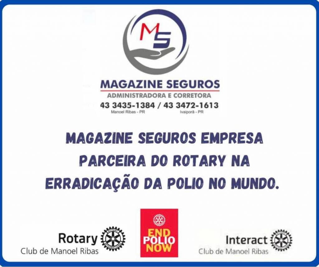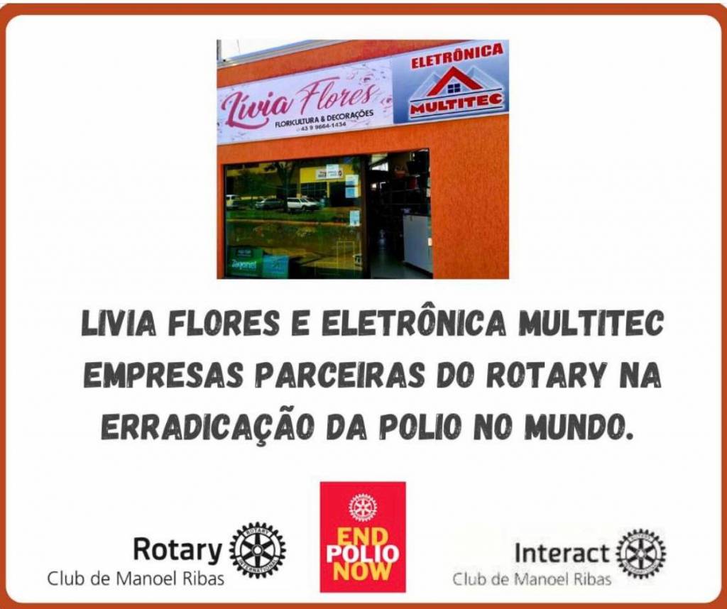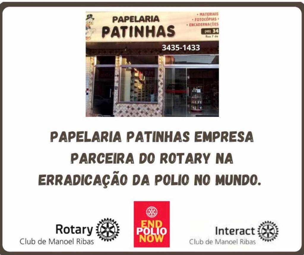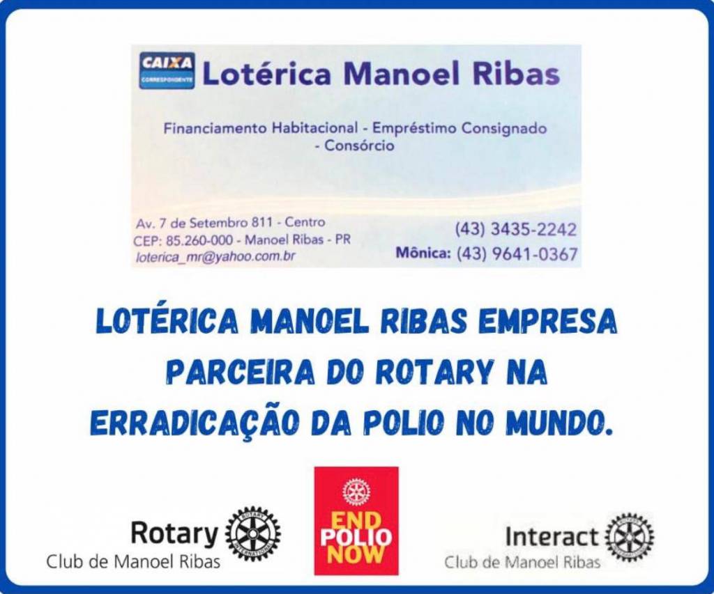 Chegando ao final do ano rotário 2020/2021 o Rotary Club de Manoel Ribas, sob a Presidência da Edna Gallo , queremos agradecer as empresas parceiras e a todos que colaboraram anonimamente com os Projetos do Rotary Club e principalmente na Erradicação da Pólio no mundo.