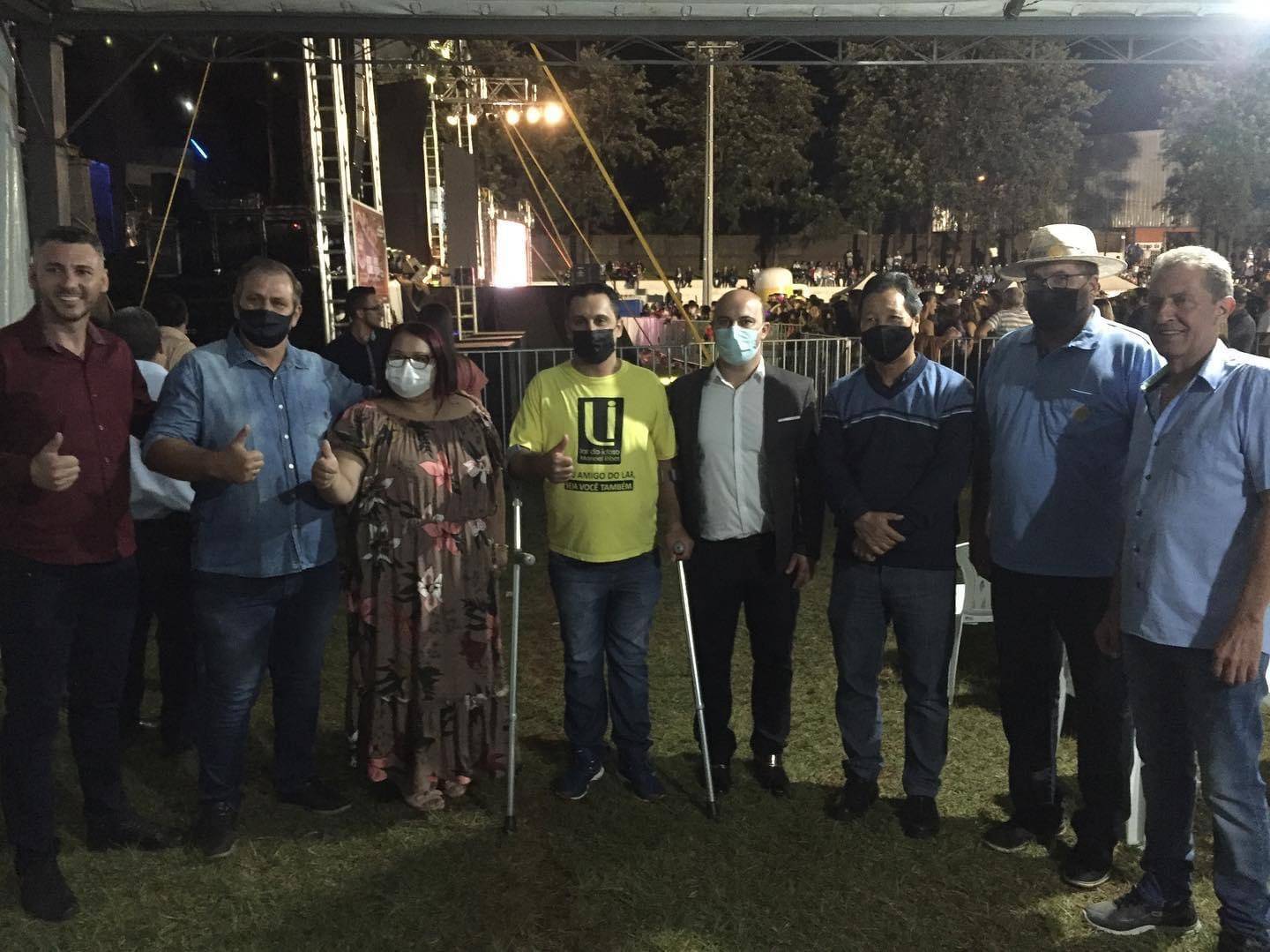 Presidente do Rotary Club de Manoel Ribas Vagner Penques com o Prefeito de Manoel Ribas José Corona e autoridades presentes na festa do município.