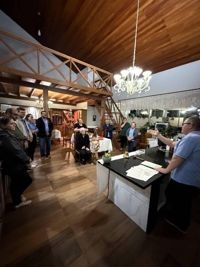 O momento também contou com a participação de seus filhos. Fabiano recordou com carinho das festividades rotárias de sua infância, reforçando o orgulho em receber os companheiros em casa, mesmo em tempos difíceis. Augusto destacou a alegria do pai ao saber que a reunião seria realizada em seu lar, e agradeceu a presença de todos. Sua esposa, Vanil, também expressou gratidão e falou sobre o carinho e a dedicação de Valentin ao clube e aos ideais rotários.