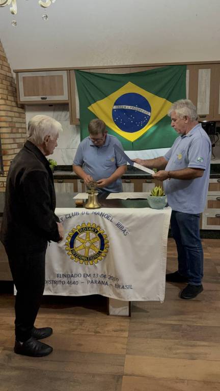 O companheiro Nilto fez um breve relato da trajetória rotária de Valentin, destacando que ele foi admitido no Rotary Club de Manoel Ribas em 1983, ano em que o governador do distrito era François Barbosa Dinis, cujo lema rotário era:
