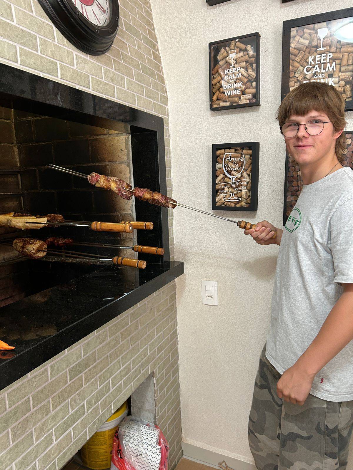 No seu primeiro final de semana em solo brasileiro, o intercambista Maksymilian Gontarz, natural da Polônia, vivenciou um dos momentos mais emblemáticos da cultura nacional: o churrasco.