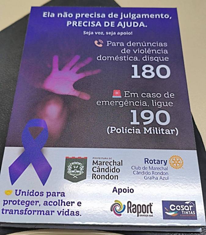 Na data de 27 de agosto de 2025, o Rotary Club de Marechal Cândido Rondon Gralha Azul realizou uma importante solenidade no espaço da Feira Sabor e Arte, oficializando o lançamento do Projeto Banco Lilás. A iniciativa tem como principal objetivo conscientizar a população sobre a violência doméstica e fortalecer a rede de proteção às mulheres, reforçando o compromisso da entidade com a cidadania e o bem-estar social.