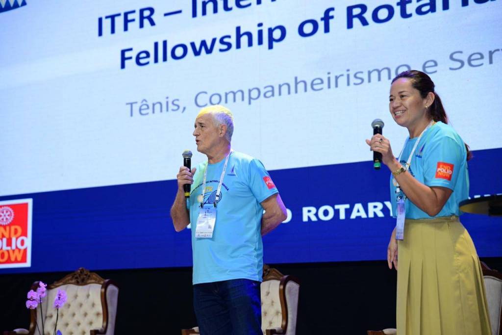 Durante o Instituto Rotary Brasil realizado em Maringá, os participantes tiveram a oportunidade de conhecer mais de perto o International Tennis Fellowship of Rotarians (ITFR), em uma apresentação conduzida por Dalzira Silveira e o companheiro Marcos Franco, integrantes e incentivadoresnda prática do tênis como instrumento de integração e companheirismo.