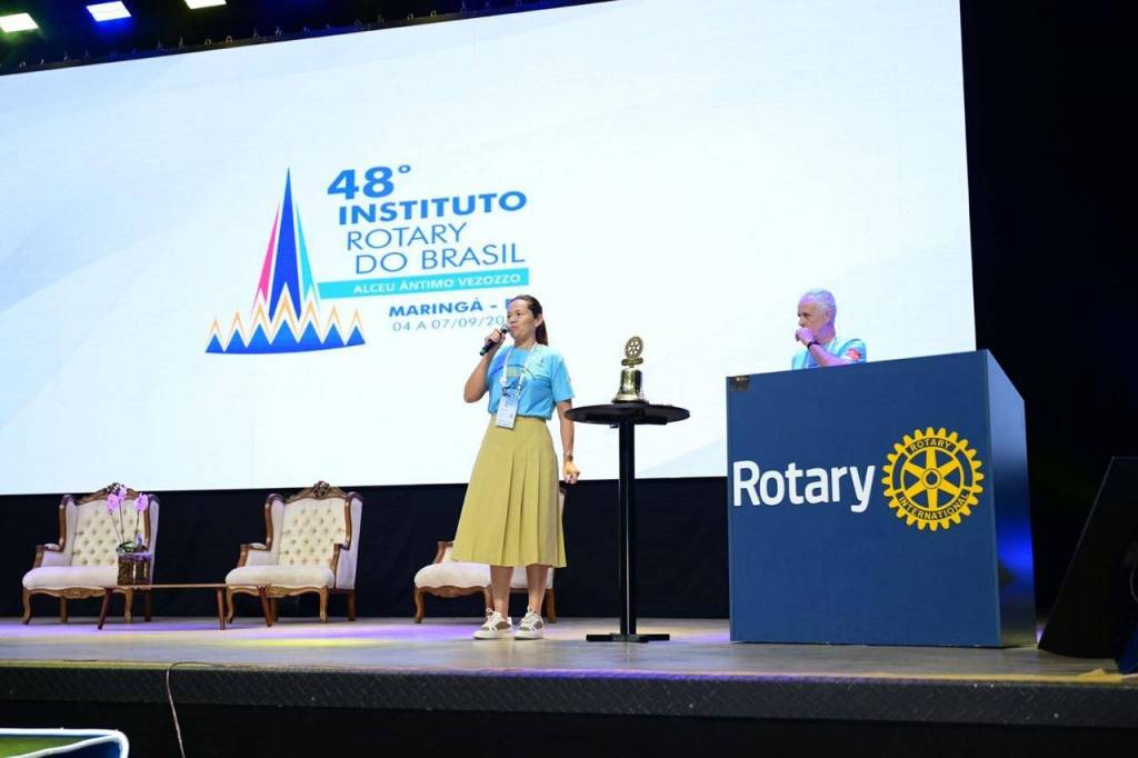 A presidente Dalzira Silveira do RCFI Grande Lago leva o ITFR ao Instituto Rotary Brasil em Maringá