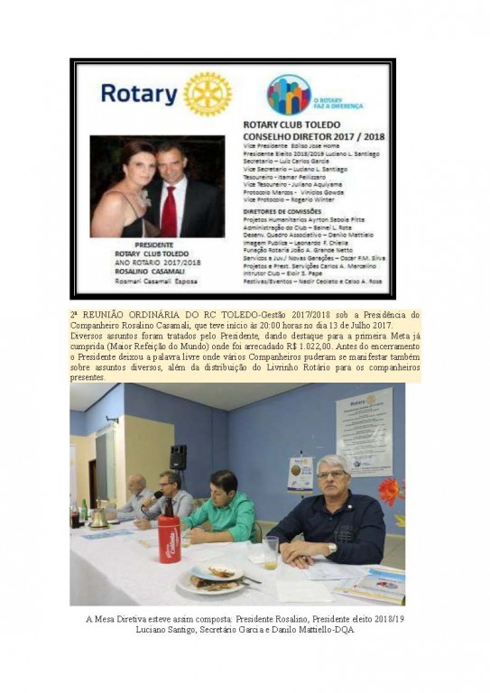 2ª REUNIÃO - MAIOR REFEIÇÃO DO MUNDO - PRESIDENTE ROSALINO CASAMALI